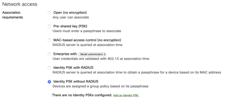 Meraki propose en effet l’IPSK avec serveur RADIUS depuis quelques temps et c’est désormais faisable… sans ce fameux serveur.