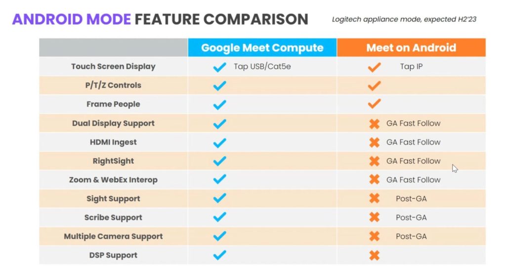 Au lancement de “Meet on Android” chez Logitech, il n’y aura pas la parité des fonctions.