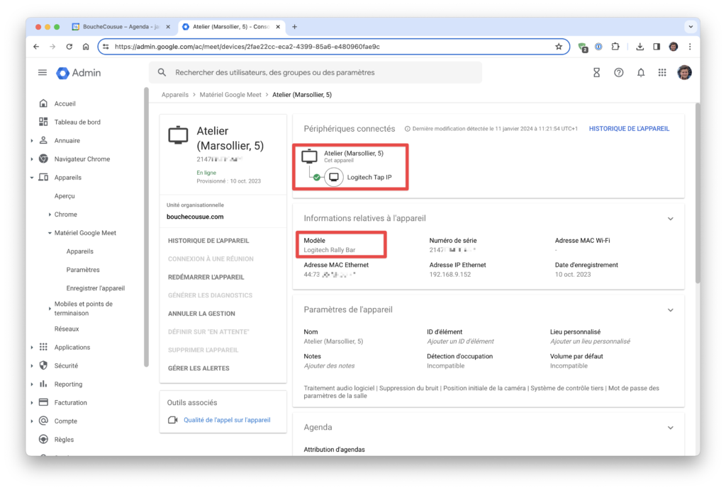 La console Google Workspace Admin a une section dévolue au “Matériel Google Meet” . On y retrouve sa ou ses salles de visio une fois qu’elles sont installées et configurées. Google a d’ailleurs publié un guide à ce sujet ici.